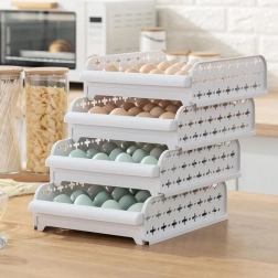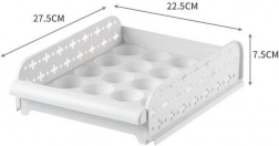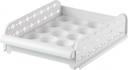Chytré řešení pro skladování vajec v lednici i na kuchyňské lince. Modulární podnosy se speciálními kolejnicemi umožňují pohodlné stohování a vysouvání jako zásuvky, takže vždy rychle sáhnete po čerstvém vejci. Otevřená a větraná konstrukce podporuje cirkulaci vzduchu a pomáhá udržet potraviny déle čerstvé.
