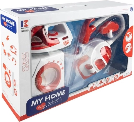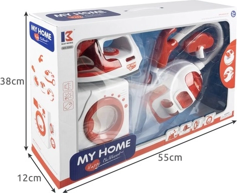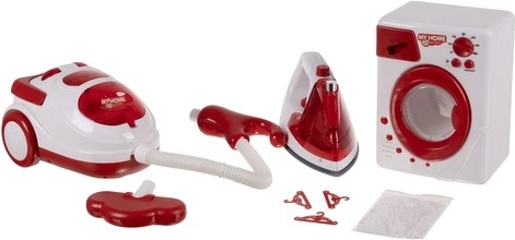 Dětský set domácích spotřebičů nabízí imitaci reálných spotřebičů, včetně pračky, žehličky a vysavače. Skvělá zábava pro děti při nápodě na domácí povinnosti.