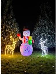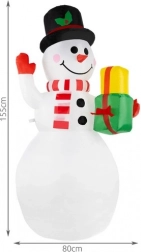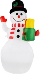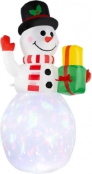 Nafukovací sněhulák s vestavěným LED projektorem se skvěle hodí jako dekorace pro venkovní i vnitřní použití. Je opatřen černým kloboukem, červeným nosem a drží dárky. Díky použití voděodolných a odolných materiálů, zaručuje dlouhou životnost a úžasný vzhled na několik let. Kromě toho má sněhulák zabudovaný kompresor, který rychle nafoukne strukturu do dokonalého tvaru.