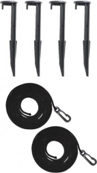 Balení obsahuje čtyři kolíky, dvě lanka a dva karabinky k zajištění sněhuláka proti pádům nebo větru.