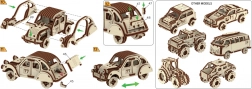 Tento model rally vozu nabízí chytlavou kombinaci kreativní zábavy a elegantní dekorace do interiéru. Díly z prvotřídní březové překližky do sebe přesně zapadají – bez lepidla a šroubů – a výsledkem je působivý retro automobil s množstvím drobných detailů.