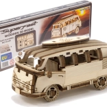 Objevte zábavné a stylové dřevěné 3D puzzle WOODEN CITY Superfast – funkční mechanický model retro minibusu, který po sestavení nejen skvěle vypadá, ale i skvěle jezdí. Model se skládá bez lepidla a nářadí, je vyroben z kvalitní přírodní překližky a potěší propracovanými detaily i snadnou obtížností pro rychlé a zábavné stavění.
