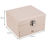 Velké zrcátko ve víku pro snadné zkoušení šperků a kovová západka, která udrží poklady v bezpečí i na cestách.