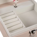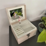 Tato roztomilá šperkovnice v jemném růžovo-béžovém tónu je ideálním místem pro první šperky a malé poklady. Po otevření víka se rozezní příjemná melodie a jednorožec se začne otáčet před praktickým zrcátkem, které usnadní zkoušení náušnic či náhrdelníků.