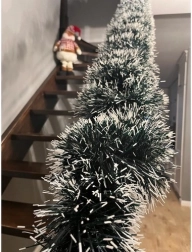 Girlanda je vyrobena z kvalitního PE, díky čemuž je lehká, odolná a nenasákavá. Vnitřní měkký, ohebný drátek umožňuje snadno formovat oblouky, smyčky i přesné linie bez lámání. Zeleno‑bílý kontrast po rozsvícení světýlek vytvoří magickou, teplou záři a podtrhne sváteční atmosféru.