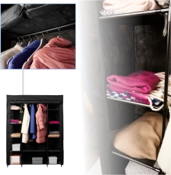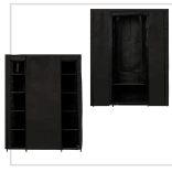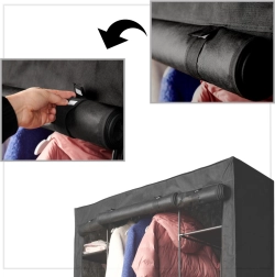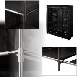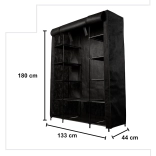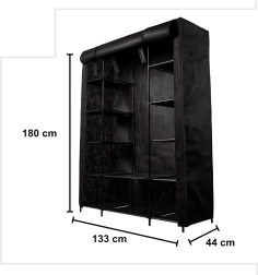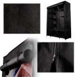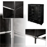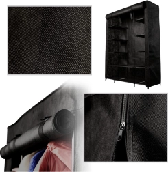 Uspořádejte si šatník a získejte více místa s touto prostornou textilní skříní XXL v černé barvě. Nabízí velkou kapacitu, praktické police a tyč na ramínka, zipové dveře pro čistý vzhled a odolnou, ale lehkou konstrukci pro snadné přemístění.