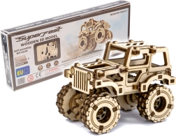 Dopřejte si radost ze stavění s dřevěným 3D puzzle Monster Truck Superfast. Díky přesným laserovým výřezům dílky do sebe perfektně zapadají a vy tak získáte stylový model s funkčním pohybem kol – ideální k vystavení i ke krátkým jízdám na stole.