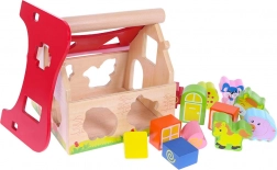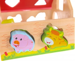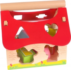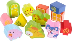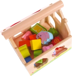 Barevné dřevěné kostky s otvory odpovídajících tvarů pomáhají dětem trénovat třídění, logiku a rozpoznávání. Některé dílky mají podobu zvířátek z farmy, takže si děti nenásilně rozšíří slovní zásobu i představivost.