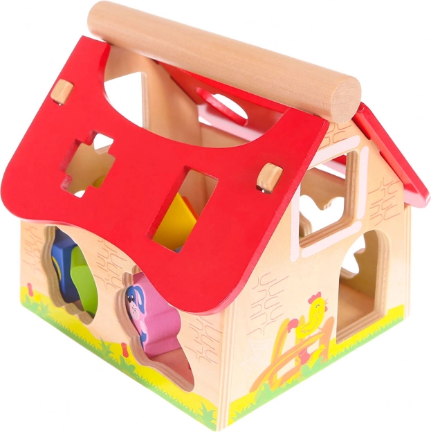 Domeček má velikost akorát do dětských rukou a díky kompaktním rozměrům se snadno přenáší i skladuje. Ideální hračka na doma i na cesty.