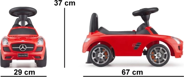 Odrážedlo inspirované legendárním modelem MERCEDES‑BENZ SLS AMG bylo navrženo s důrazem na detail a pohodlí malých řidičů. Aerodynamický tvar, pevné zpracování a snadné ovládání přinášejí spoustu radosti z jízdy, zatímco opěrka zad a stabilní konstrukce pomáhají udržet správné sezení.
