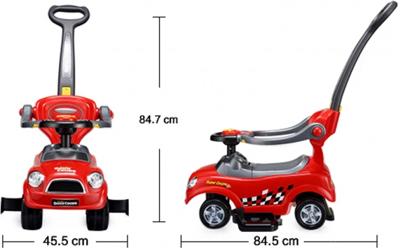 Chytré řešení 3 v 1 přináší tři režimy používání: bezpečný režim s ochrannými zábranami a stupačkami pro nejmenší, režim s vodicí tyčí pro snadné ovládání rodičem a klasické odrážedlo pro samostatnou jízdu, když už dítě dosáhne nohama na zem. Díky tomu jde o univerzální hračku, která roste s vaším dítětem a přizpůsobí se jeho dovednostem.