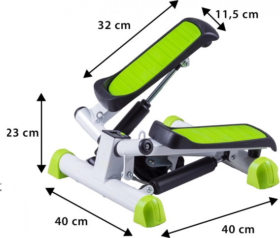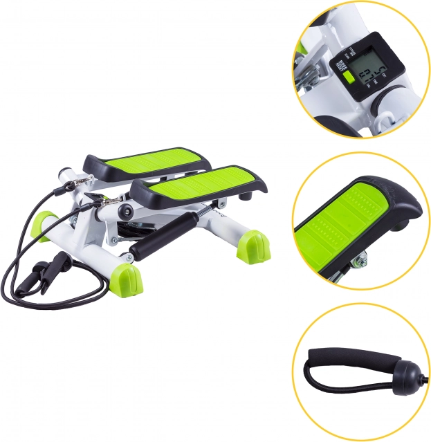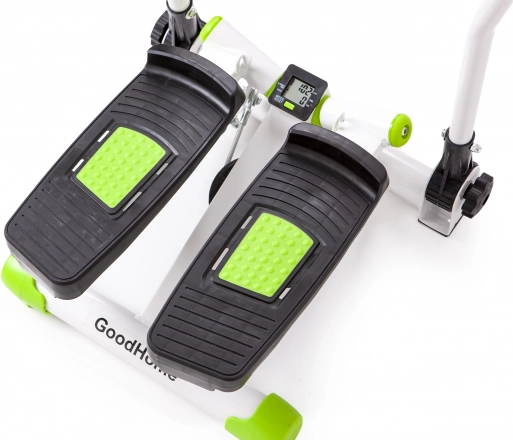 Integrovaný LCD displej sleduje klíčové ukazatele – čas, kroky za minutu, celkový počet kroků a spálené kalorie. Díky nastavení odporu snadno přizpůsobíte intenzitu svým cílům, a protiskluzové nášlapy udrží jistotu při dynamickém cvičení.