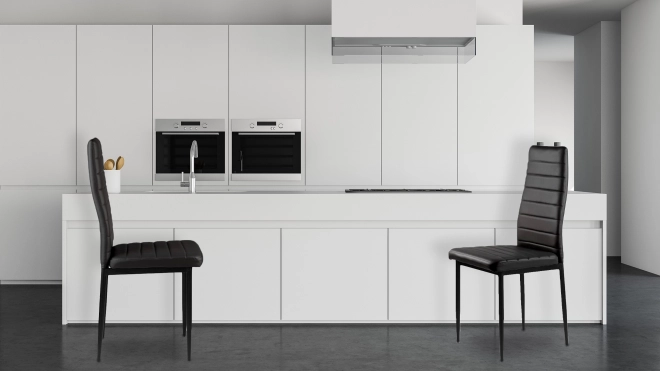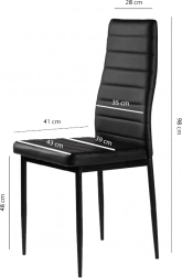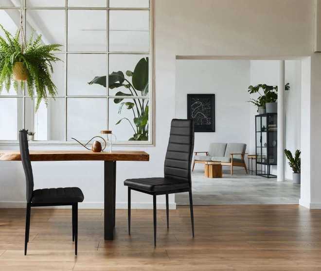 Vylaďte jídelnu nebo kuchyň sadou čtyř černých židlí, které se díky minimalistickému provedení snadno kombinují s různými typy stolů i interiérů. Čalounění z jemné eko kůže působí elegantně, zároveň se snadno čistí a odolává každodennímu používání.