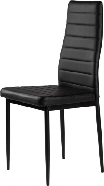 Černé čalounění z eko kůže a štíhlé kovové nohy vytvářejí elegantní, nadčasový vzhled do moderních interiérů.