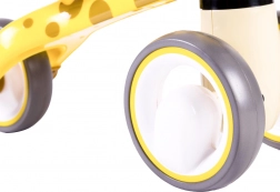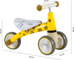 První krůčky do světa ježdění budou s odrážedlem žirafa snadné a bezpečné. Čtyři stabilní kolečka, uzamykatelný úhel otočení řídítek a nízká hmotnost kolem 2 kg dávají malým jezdcům jistotu a rodičům klid. Odrážedlo je vyrobeno z pevného plastu a doplněno o měkké pěnové prvky pro pohodlí a bezpečný úchop.