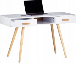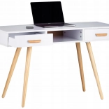 Objevte elegantní a funkční stůl, který se skvěle hodí do domácí pracovny, ložnice i obývacího pokoje. Kombinace bílé desky a přírodních borovicových nohou vytváří čistý skandinávský vzhled, který snadno sladíte s moderním i klasickým interiérem. Díky promyšlenému úložnému prostoru budete mít vše po ruce a pracovní plocha zůstane přehledná.