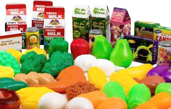 Plastová sada potravin nabízí dětem skvělou zábavu a umožňuje jim poznávat jednotlivé položky při hře, například při hádání jejich názvů. Tato sada je ideálním doplňkem dětských kuchyní nebo herních obchodů. Díky rozmanitosti jednotlivých položek bude hra ještě zábavnější.