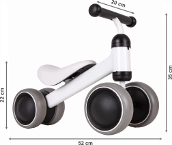 Vhodné pro děti ve věku 18 až 36 měsíců s maximálním zatížením do 20 kg. Rozměry: 52x35x22 cm.