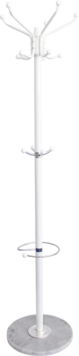 Věšák ModernHome je ideálním řešením pro každý vstupní prostor. Robustní kovové provedení v bílé barvě a velká kruhová mramorová základna zajišťují výbornou stabilitu, takže bez obav unese i těžší kabáty. Horní část se volně otáčí, díky čemuž snadno najdete právě ten kousek, který potřebujete.