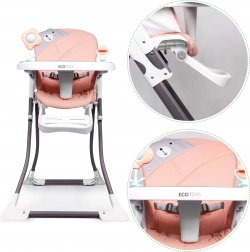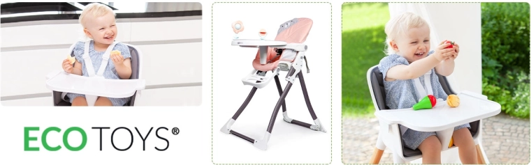 Užijte si klidné stolování s miminkem u jednoho stolu. Jídelní židlička ECOTOYS pomáhá dětem napodobovat dospělé, učit se správným návykům a zároveň poskytuje maximální pohodlí a bezpečí. Široký pultík slouží nejen k jídlu, ale i k zábavě – vaše dítě si může stavět kostky nebo kreslit.