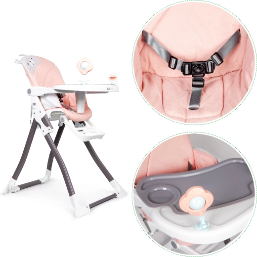 - Odnímatelný pultík s nastavením pozice a dvěma hračkami pro zábavu při sezení.