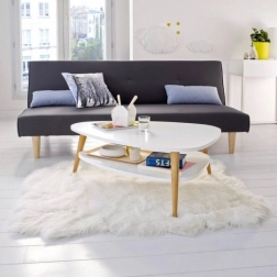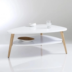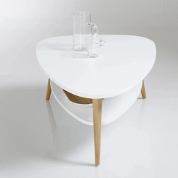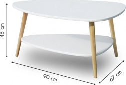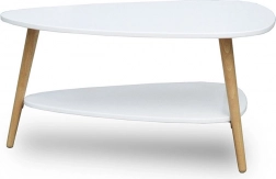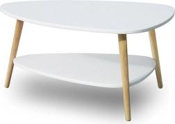Konferenční stolek nabízí bílou desku s dřevěnými nohami a spodní policí pro větší úložný prostor.