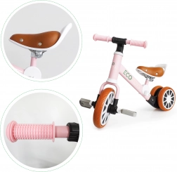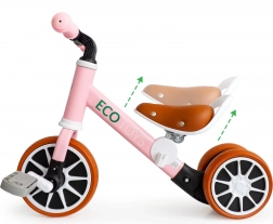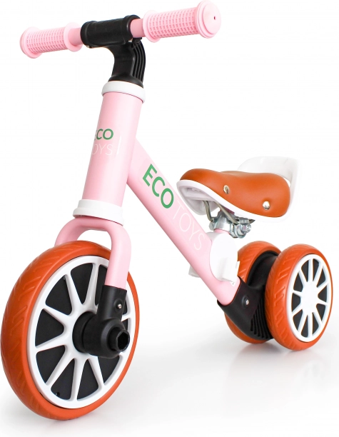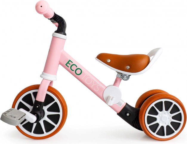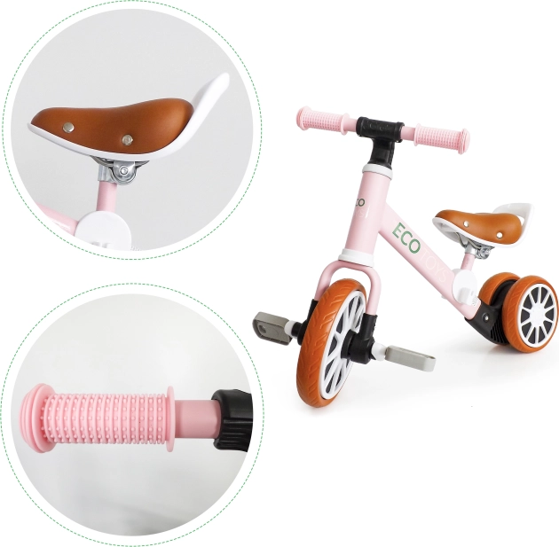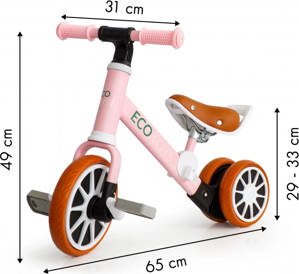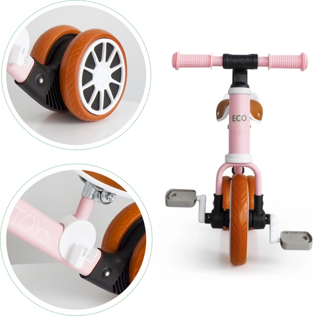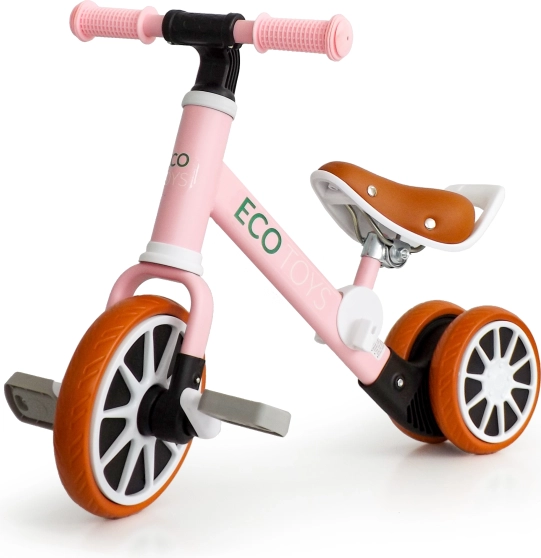 Růžové odrážedlo ECO TOYS je navrženo pro malé děti, které se učí rovnováze a koordinaci. Díky odnímatelným pedálům a nastavitelné výšce sedadla roste s dítětem. Tříkolový design zajišťuje stabilitu, takže dítě může bezpečně objevovat svět kolem sebe.