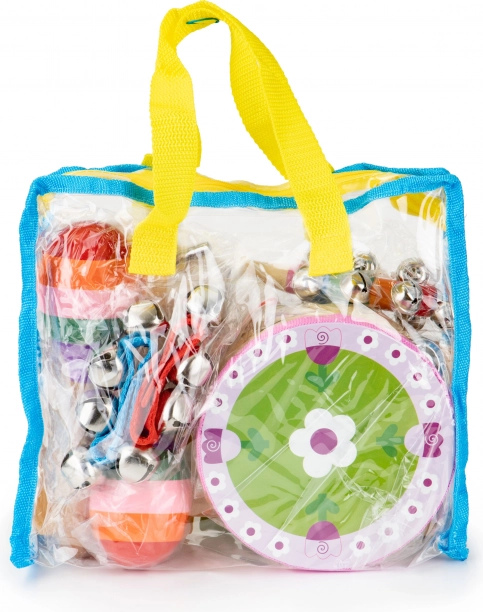 Objevte radost z hudby s pestrou sadou 14 nástrojů, která zabaví celou rodinu. Děti se seznámí s rytmem, tóny i melodiemi a současně si procvičí jemnou i hrubou motoriku. Průhledná taška s uchem umožní mít všechny nástroje vždy pohromadě a připravené na cesty i do školky.