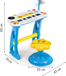 Rozšiřte hudební fantazii vašeho dítěte s tímto barevným elektronickým pianem se stoličkou, mikrofonem a možností připojení telefonu/MP3. Nabízí 31 kláves, předprogramované melodie, zvukové efekty nástrojů a karaoke – ideální dárek pro malé muzikanty od 3 let.