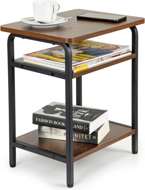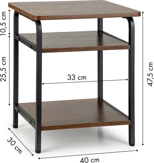 Tento stolek je navržen v moderním loftovém stylu, který kombinuje industriální prvky s elegantním designem. Jeho tři úrovně poskytují dostatek místa pro umístění dekorací, knih nebo dalších předmětů, což z něj činí nejen estetický, ale i praktický doplněk do vašeho interiéru.