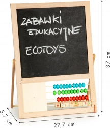 Prozkoumejte nekonečné možnosti s touto výjimečnou tabulí! Dřevěná stabilní konstrukce nabízí dvojstrannou plochu - tradiční černou pro kreslení křídou a bílou pro fixy a magnetická čísla. Mladí umělci a badatelé si nejen vytvoří svá malá umělecká díla, ale mohou si také hrát na školu nebo hrát slovní hříčky.