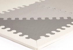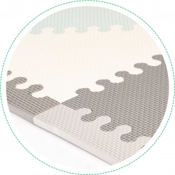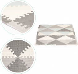 Matní trojúhelníkové díly s "zuby" umožňují kdykoliv změnit tvar podložky. Tloušťka 0.9 cm poskytuje dokonalou ochranu při pádu a příjemnou měkkost při používání.