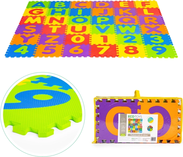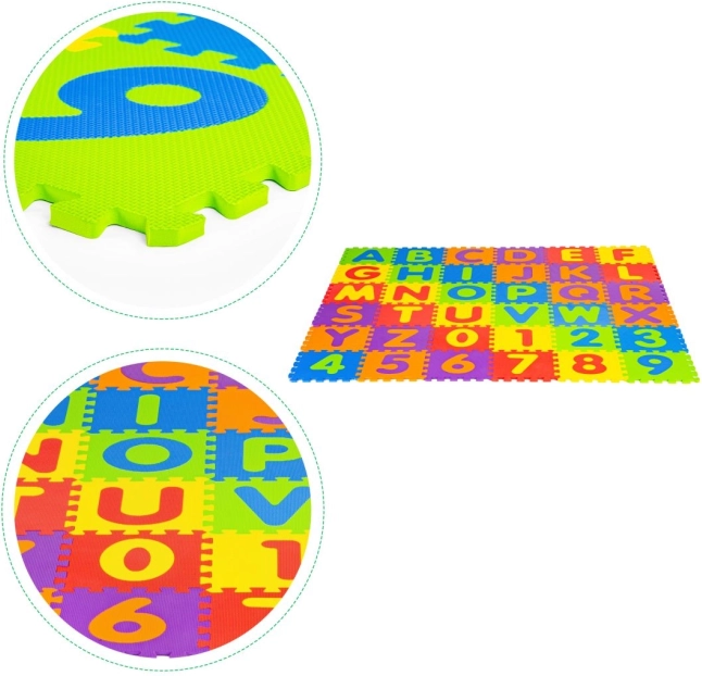 Tato vzdělávací pěnová podložka funguje jako puzzle, které lze skládat do různých tvarů a velikostí. Díky tloušťce 0,9 cm účinně tlumí pády a izoluje od chladu. Každý díl (27 × 27 cm) obsahuje vyjímatelná písmena a číslice, takže učení abecedy a počítání je hravé a přirozené.