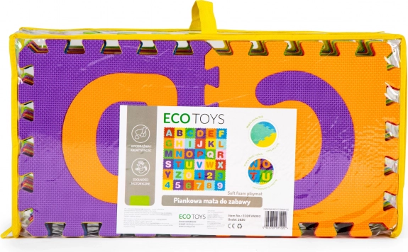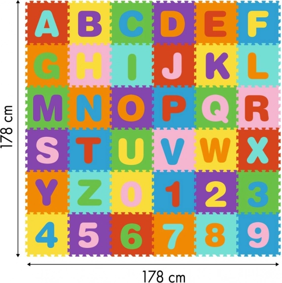 Velká pěnová podložka z EVA pro děti s písmeny a čísly 178 × 178 cm, 36 dílů ECOTOYS