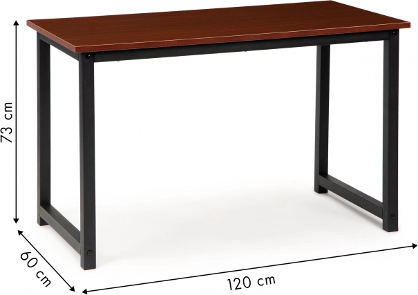 Rozměry 120 × 60 cm poskytují dostatek místa pro monitor, klávesnici i knihy, takže je ideální pro home office, psaní úkolů i hraní her. Elegantní linie a hnědá deska s černými nohami se hodí do různých stylů interiéru.