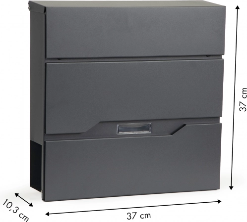 Tato poštovní schránka je vyrobena z pozinkované oceli, což zaručuje odolnost vůči povětrnostním vlivům a trvanlivost. Její univerzální design je ideální pro instalaci na ploty a fasády různých budov včetně obytných, kancelářských a komerčních objektů.