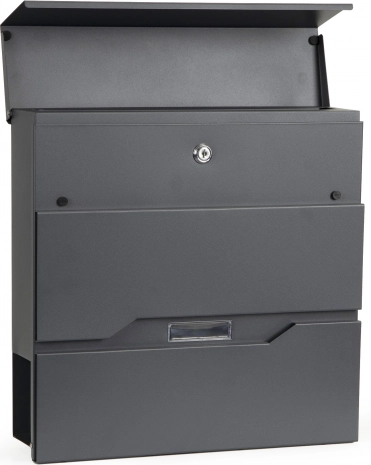 Schránka má moderní a elegantní design s integrovaným držákem na noviny, který odděluje poštu od reklam.