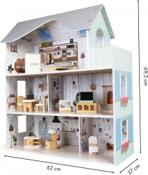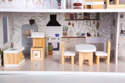 Domeček má tři samostatné úrovně a celkem čtyři místnosti, které jsou stylizovány dle svého určení. Součástí balení je 10 kousků dřevěného nábytku a různé doplňky jako vysavač, kytara, zrcadlo nebo psí bouda. Každý prvek lze volně přemisťovat a podle potřeby měnit uspořádání.