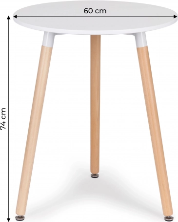 modernhome skandinávský kulatý stůl 60 cm, bílá deska a bukové nohy
