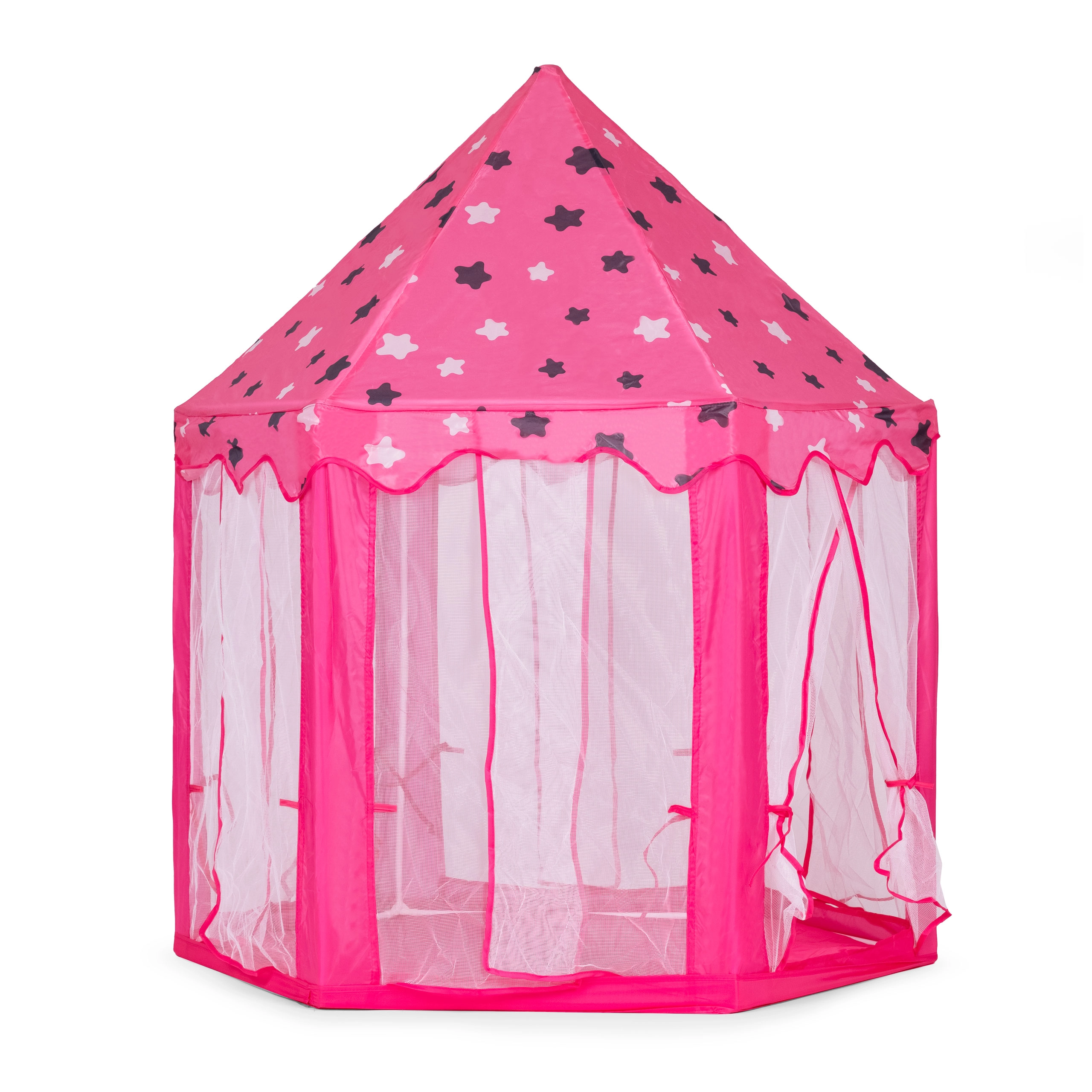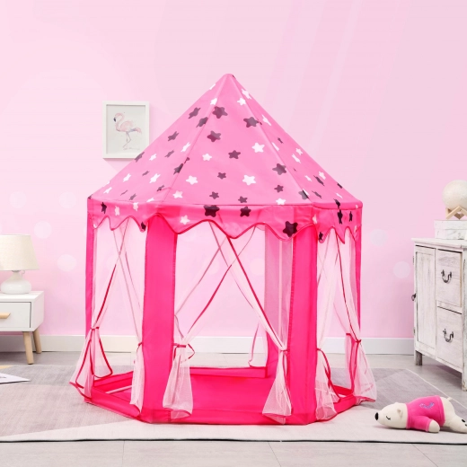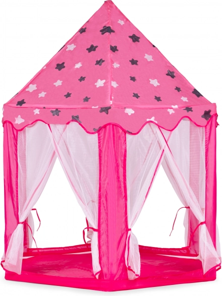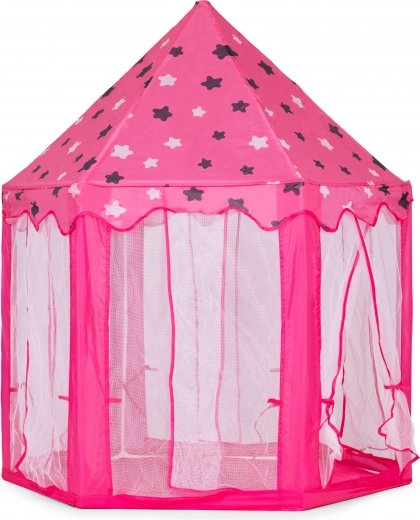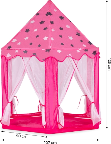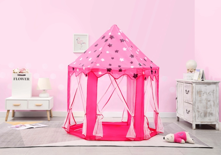 Proměňte dětský pokoj v pohádkové království. Tento stan v podobě princeznovského zámku nabízí útulný koutek pro hraní, čtení i relax. Díky lehkému skládacímu rámu a textilní podložce ho snadno postavíte doma i venku. Transparentní síťované panely zajišťují proudění vzduchu a přehled o dění uvnitř.