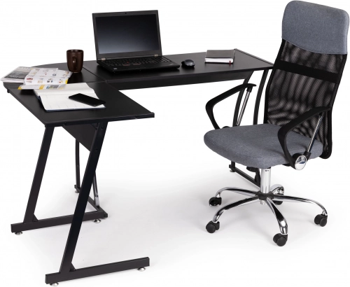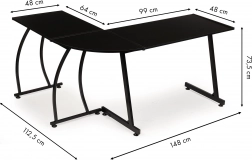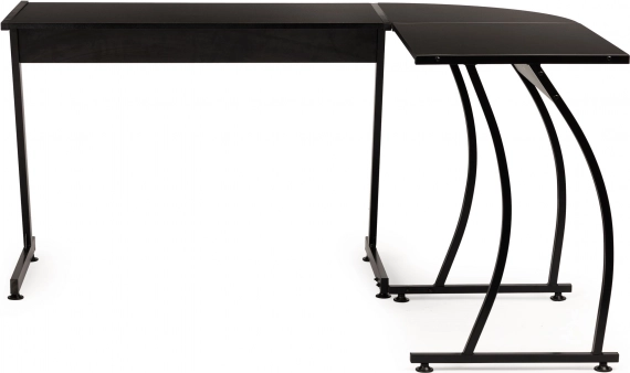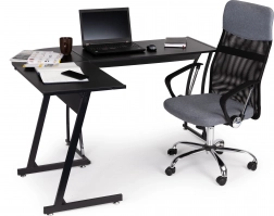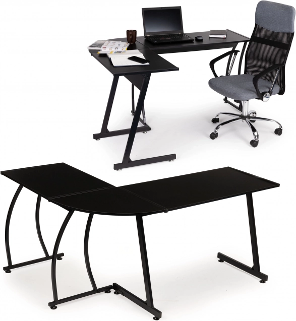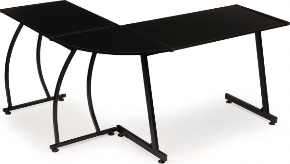 Moderní rohový stůl v loft stylu kombinuje pevnou kovovou konstrukci a odolnou laminovanou desku v matně černé barvě. Nabízí velkou pracovní plochu pro práci, studium i hraní, možnost levé či pravé montáže boční desky a stabilní provedení s nastavitelnými nožičkami. Ideální do domácí kanceláře, studovny i herního koutku.