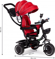 Dětská tříkolka ECOTOYS s otočným sedátkem a stříškou v červené barvě