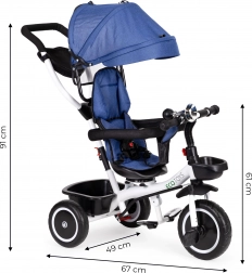 Tříkolka nabízí možnost vyjmutí střechy, zábradlí a vedení, takže se snadno přizpůsobí potřebám rostoucího dítěte. Praktické úložné košíky poskytují úložný prostor pro hračky nebo jiné drobnosti.