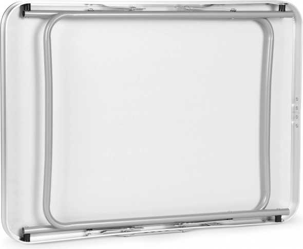Díky možnosti sklopení nožiček jej snadno proměníte v praktický kufr. Takto složený stůl lze pohodlně přemisťovat, díky jeho kompaktním rozměrům jej snadno uložíte do kufru nebo uskladníte, čímž ušetříte místo.