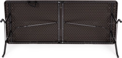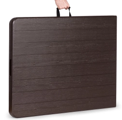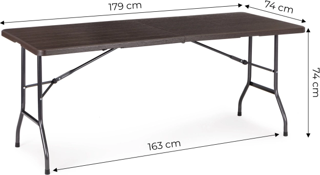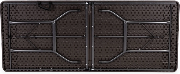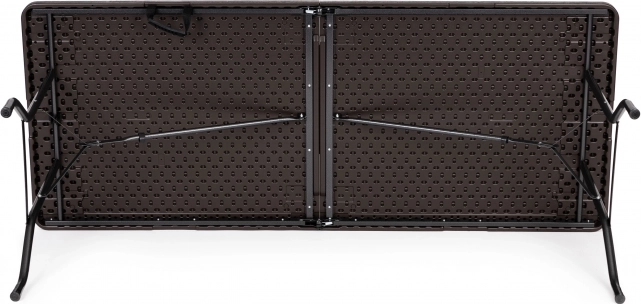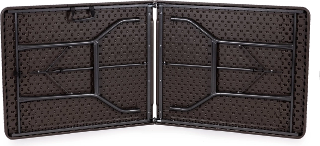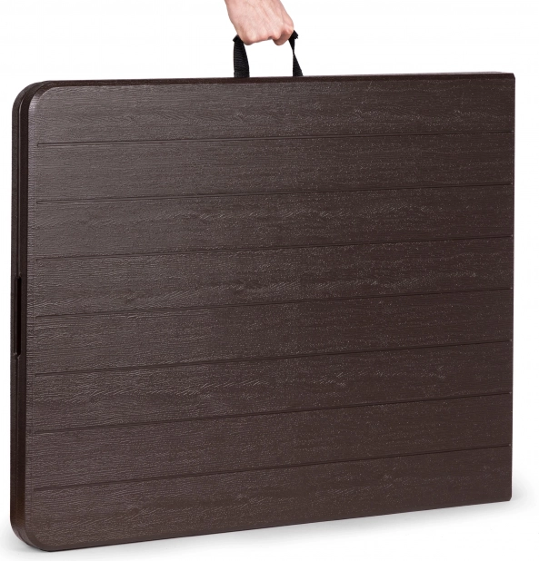 Chytrý mechanismus vám umožní složit stůl do kompaktního kufříku během zhruba 20 sekund. Ve složeném stavu má 90 × 70 × 8,6 cm a s integrovanou rukojetí se snadno přenáší i skladuje – ideální na catering, zahradní párty, kempování i rodinné pikniky.