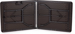 Díky chytrému mechanismu složíte stůl do kompaktního kufříku (90 × 70 × 8,6 cm) během chvilky. Integrovaná rukojeť usnadňuje přenášení i skladování doma, v autě či ve skladu.