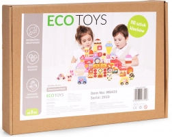 Každý dílek je vyroben z kvalitního dřeva, opatřen netoxickými, ekologickými barvami a má hladké, bezpečné hrany. Součástí je také praktický textilní sáček pro snadné ukládání a převážení kostek.