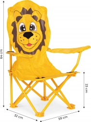 Dopřejte dětem vlastní pohodlné místo při každém dobrodružství. Dětská skládací židle s veselým designem lví tváře kombinuje bezpečí, komfort a odolnost. Ocelový rám zajišťuje stabilitu, zatímco kvalitní potah z 600D polyesteru s PU zátěrem odolá dešti i slunci. Ideální na zahradu, k vodě, do kempu i na piknik.