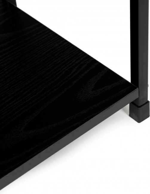 Technické detaily: Police je vyrobena z MDF desky pokryté dýhou s imitací dřeva o rozměrech 23,5 x 29 cm. Rám police je z práškově lakovaného kovu a nožky jsou opatřeny speciálními podložkami pro ochranu podlahy. Vzdálenost mezi policemi činí 30,5 cm.