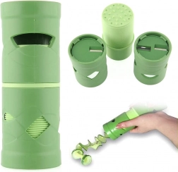 Tento kompaktní nástroj se skládá ze dvou částí - jednoduše vložte mrkev, okurku nebo jiné zeleniny a stiskněte. Výsledkem jsou jemné stuhy nebo spirály. Snadná obsluha je vhodná i pro děti.
